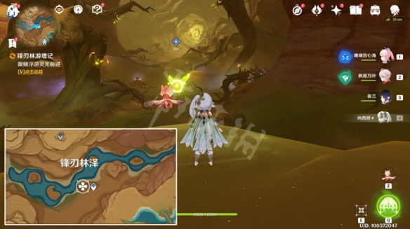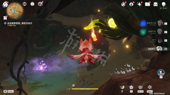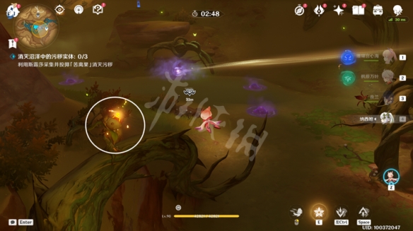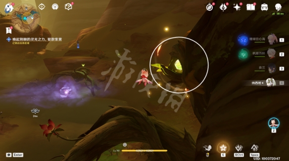 2. 操控「花灵」,靠近荆棘枝条短e一下,就能驱散紫雾。