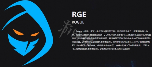 RGE战队的全称是ROGUE,来自欧洲的LEC区,是LEC赛区的三号种子,中主力队员也是来自欧洲的不同国家,在15号的比賽中以3-5的成绩止步2021年的英雄联盟全球总决赛,rge战队在本年度的表现也是非常精彩,不得不说在之前rge战队成为LEC夏季赛季后赛第一种子队伍。