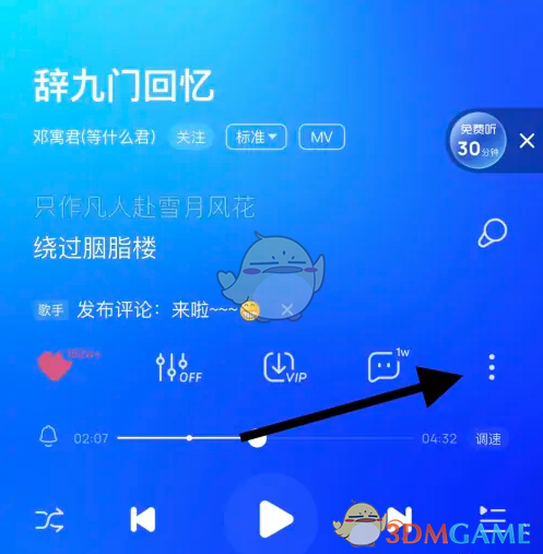 1、在单首音乐播放界面点击右侧的“三个点”按钮