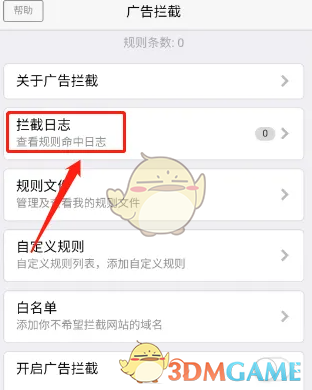 4、进入广告拦截,点击【拦截日志】。