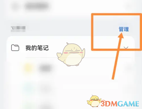 2、在笔记页面中,点击管理我的笔记,如下图所示: